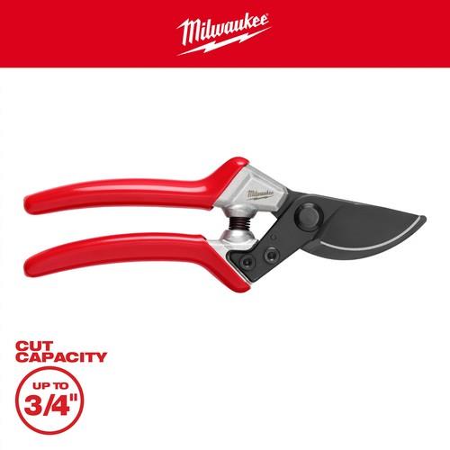 The MILWAUKEE® 3/4" Pruner delivers the Easiest Cutting and is More Durable. The ultra-sharp blade and low-friction coating deliver effortless, precise cuts on branches up to ¾". The blade attachment is more durable, resulting in longer life. The 2-position lock allows the pruner to lock at half capacity for quicker cutting on small branches. The slip-resistant dipped grips provide increased control in harsh conditions. The 3/4" Pruner is covered by a limited lifetime warranty and has a resharpenable steel blade.