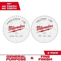 The 10", two-pack item offers a 60-tooth fine finish blade as well as a 40-tooth general purpose blade.