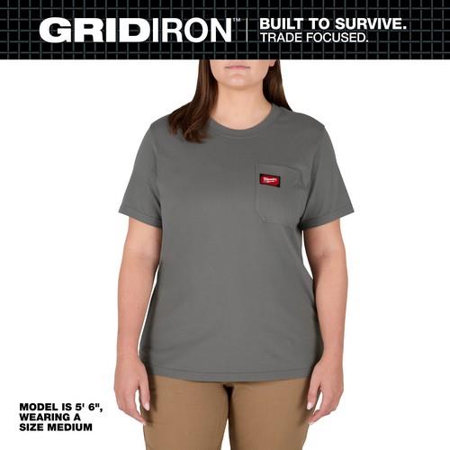 For More Information on the Women' GRIDIRON™ Pocket T-Shirt- Short Sleeve Gray 2X,