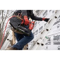 The CS61H1 is a lightweight stapler that drives 18-gauge, 3/8” crown, 5/8” – 1-1/2” staples with plastic caps. Its in-line compact feed system and top-load cap magazine secure the caps while providing optimal line of sight and maneuverability. The cap bypass switch allows the user to drive staples without caps when needed for door and window jambs. The CS61H1 is ideal for installing house wrap, roofing felt, and foam board insulation.